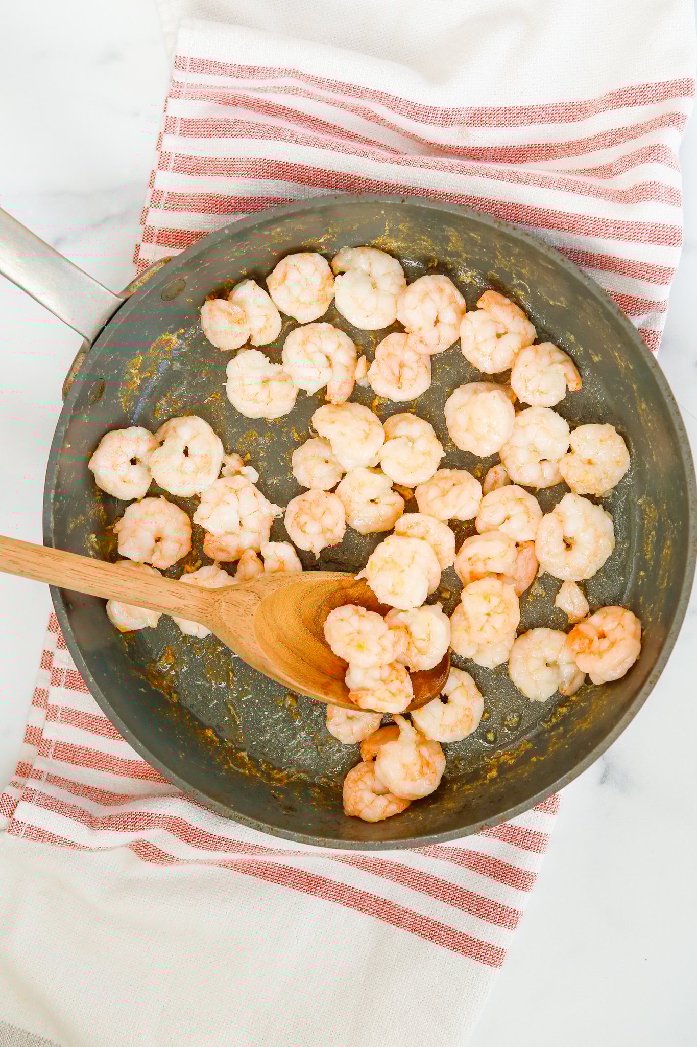 Add the shrimp and cook for 2-3 minutes per side, until pink.